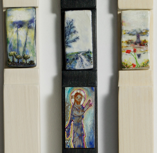 Encaustic is a beeswax technique. The oldest preserved paintings are the Fayum portraits. The beeswax encapsulates each pigment particle. The technique is durable. The bees in my backyard food forest provide the wax. Because some of the works feature icons, I started to call them affectionately ‘encausticons’.